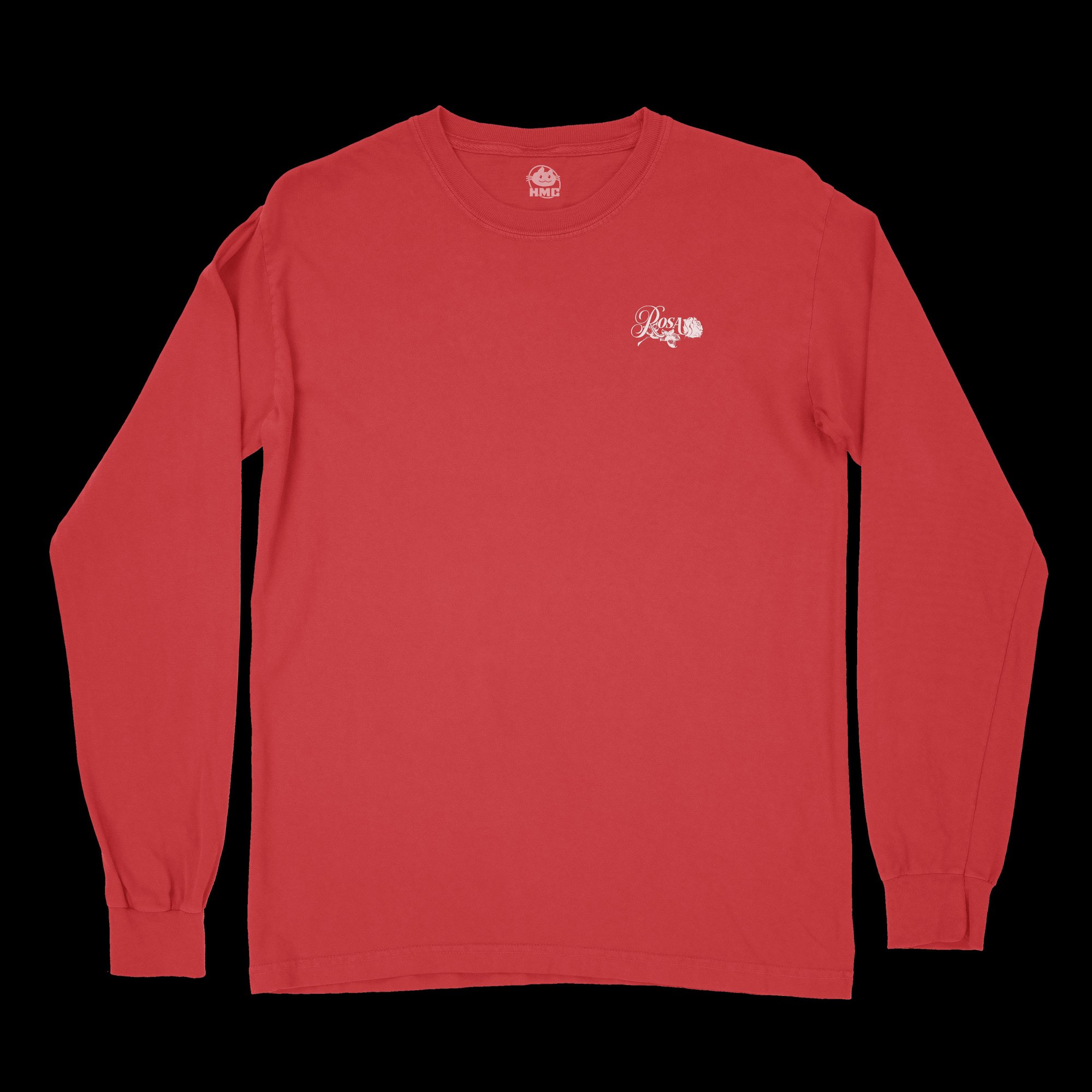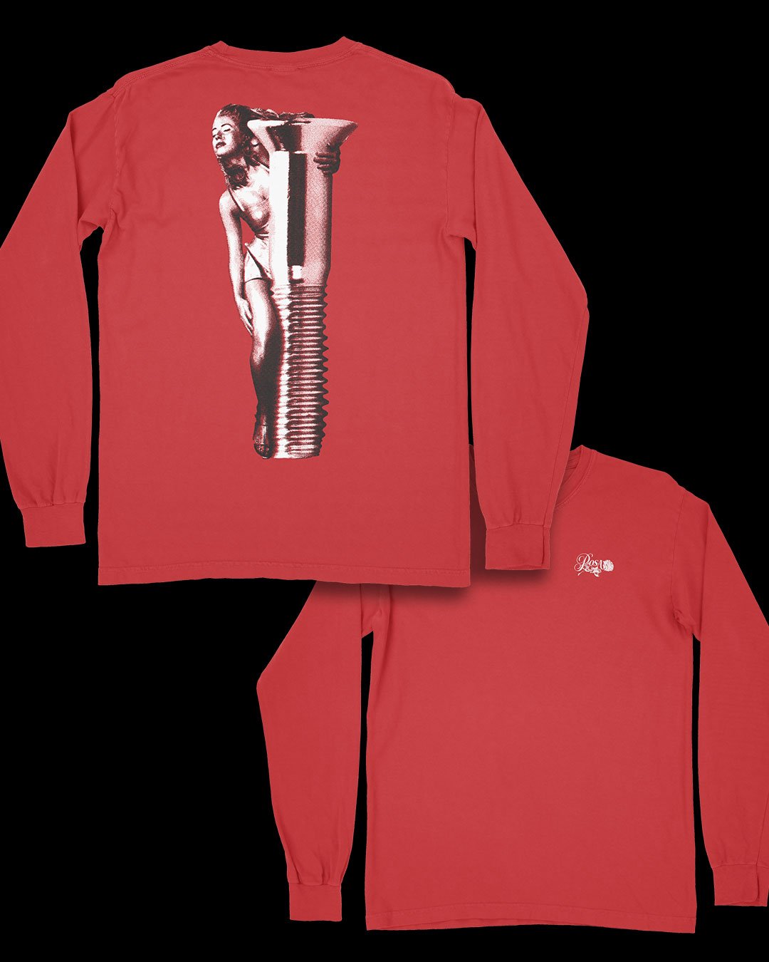 Screenprinted by hand on 6-ounce heavyweight long-sleeve. Halftone two-color application on the back with a custom letter set design on the front. Tell everyone about your first crush with this tee.