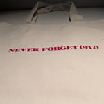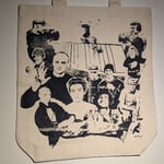 Raw cotton tote bag with great texture; the ink appears embossed due to the thickness of the cotton.